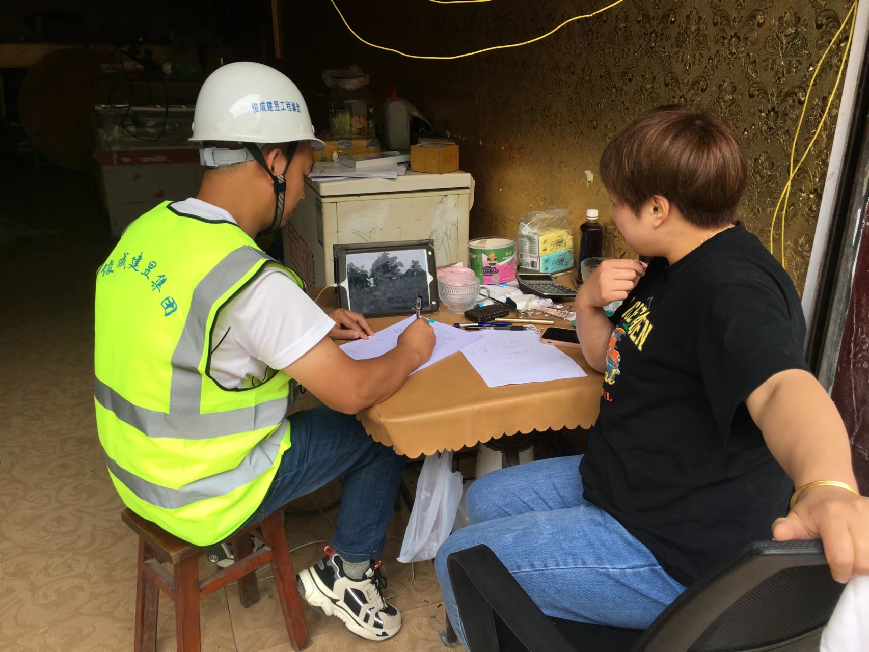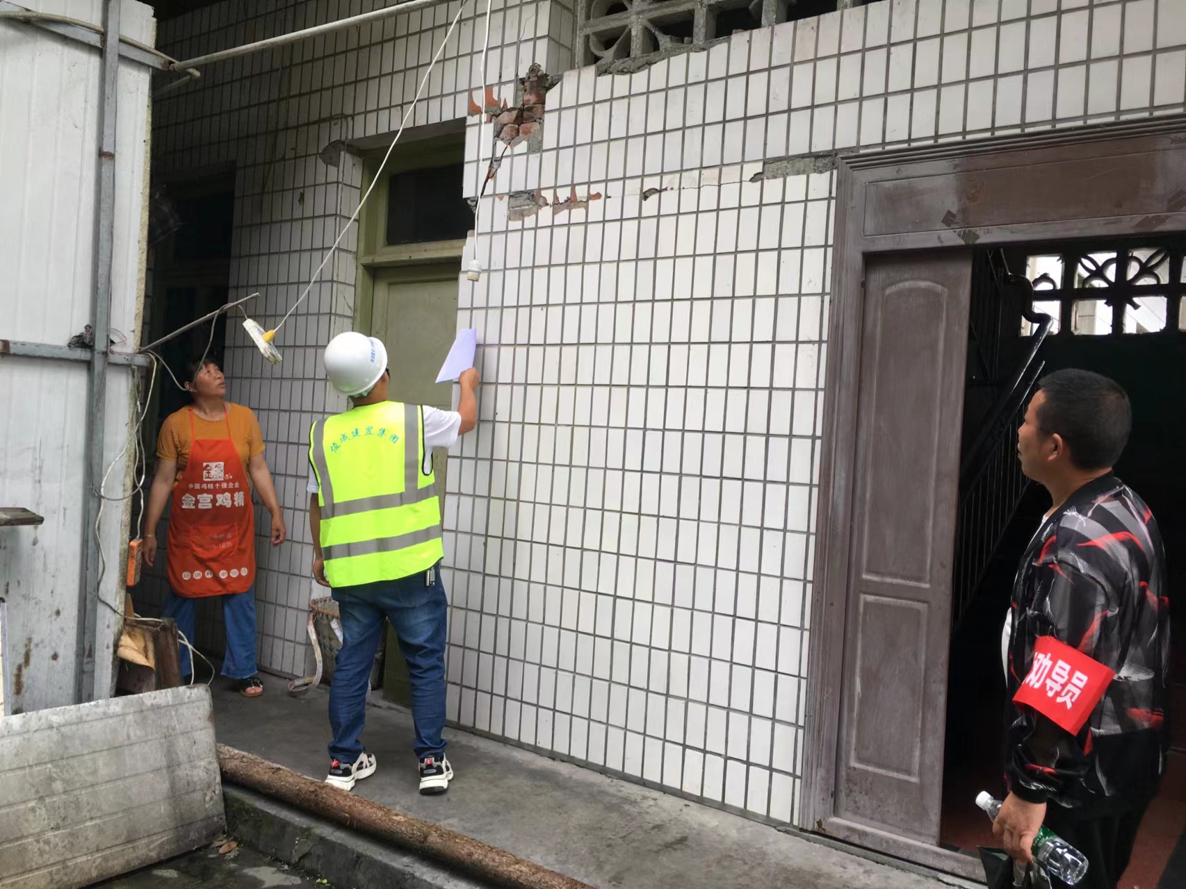 我司災后支援團隊據政府提供的500多戶住戶名單,逐一進行場地環境安全、地基基礎安全、結構部分安全、非結構部分安全等破壞情況應急評估工作。震后評估工作量大,住戶多,時間緊,支援團隊盡量壓縮、減少用餐和休息時間,爭取更多時間來查看并評估每棟房屋受損情況。支援團隊在評估房屋的同時,還為當地群眾普及地震有關知識,安撫百姓情緒,為后續恢復重建和房屋修繕加固奠定堅實基礎。